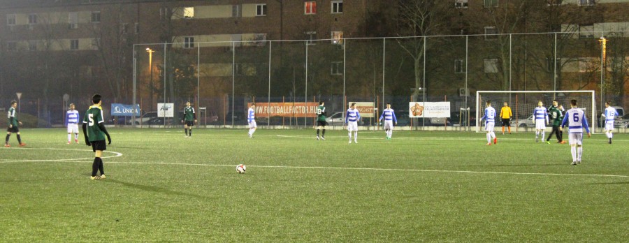 Láthatóan a vendégek, elszántabban, harapósabban léptek pályára mint a mieink. Vécsi Gabiék ugyan többet birtokolták a labdát, de ezt rendkívül kényelmesen tették. A passzolgatás zömében kimerült abban, hogy a félpályánál Kóródi és Demeter tanácstalanul többször egymáshoz játszott és ezzel igyekezett megtartani a labdát. És még ebbe is volt, hogy hiba csúszott. A labdavesztés után a zöld-feketék a jobb oldalon, a szélsőt szöktették, aki a 16-oshoz érve igyekezett minden esetben lövéssel befejezni az akció. Szerencsére Szendrei mindig a helyén volt, illetve a lövések sem voltak különösebben veszélyesek, ezért mind a 2-3 esetben elhaltak a kapusunk kezében. Egy alkalommal egy lecsorgó labdánál, Prainer még a kapusunk mellett is elvitte a labdát, de kisodródott és mire újra kapura fordulhatott és emelhetett, már ismét védve volt a kapunk, Szendrei és Demeter is visszazárt, végül az utóbbi szerezte meg a labdát. Sőt egy bal oldali szöglet után, a röviden tovább csúsztatott labdát Prainer 4 méterről hanyatt esve alig fejelte a kapunk fölé!
