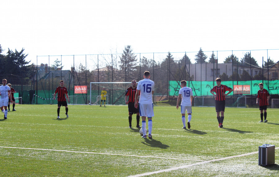 IMG_0123A félidő nem hozott túl nagy iramot és játékot. Míg a hazaiak hosszú labdákkal operáltak, a mieink kis passzokkal igyekeztek eljutni az ellenfél kapujához. Hát egyik variáció sem tűnt túl kifizetődőnek, mert a kapuk nem igazán kerültek veszélybe.