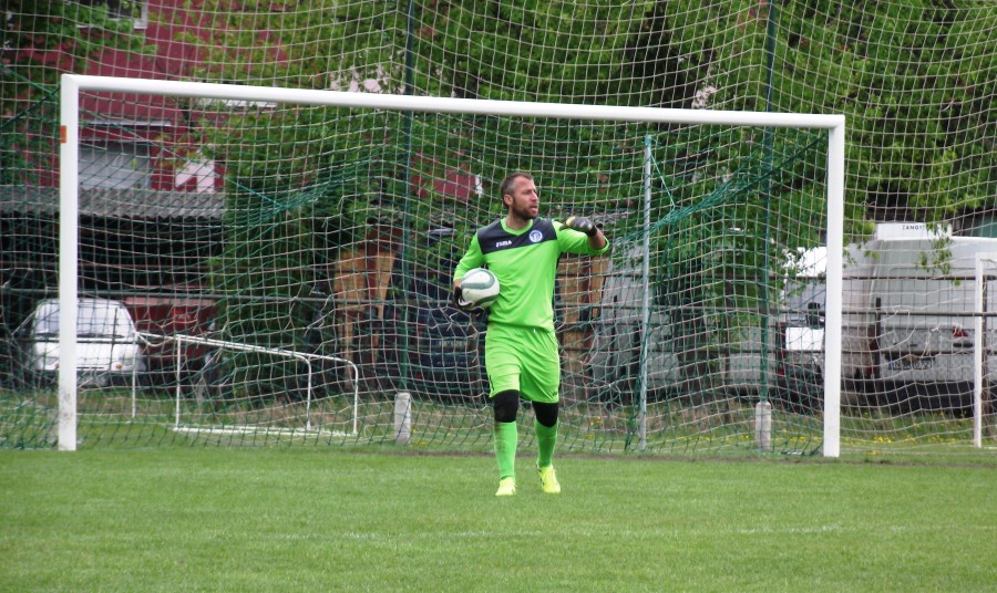 A 30. percben jött az első kényszerű cserénk. Balazsin rogyott a földre (senki nem bántotta) majd a játékostársai segítségével hagyta el a játékteret. A helyére érkező Dévényi egyből üde színfoltá vált a csapatunkban, mert a többiekhez képest némi élénkséget vitt a játékunkba. Olyannyira, hogy közreműködésével a 36. percben – minden előzmény nélkül – megszereztük a vezetést. Végre sikerült néhány passz, melynek eredményeképpen a hazai térfél közepén Dévényi két ember között vette át a labdát, ügyesen megtartotta, majd a büntetőterületen belülre cselezte magát, ahol ő is befejezhette volna az akciót, de inkább önzetlenül a mélységből érkező Vécsi elé játszott, aki a kivetődő kapus felett, 7 méterről a kapu közepébe löbbőlt 1:0.