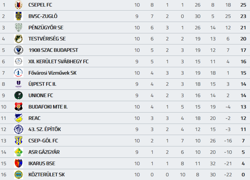 A 10. forduló eredményei és a tabella: