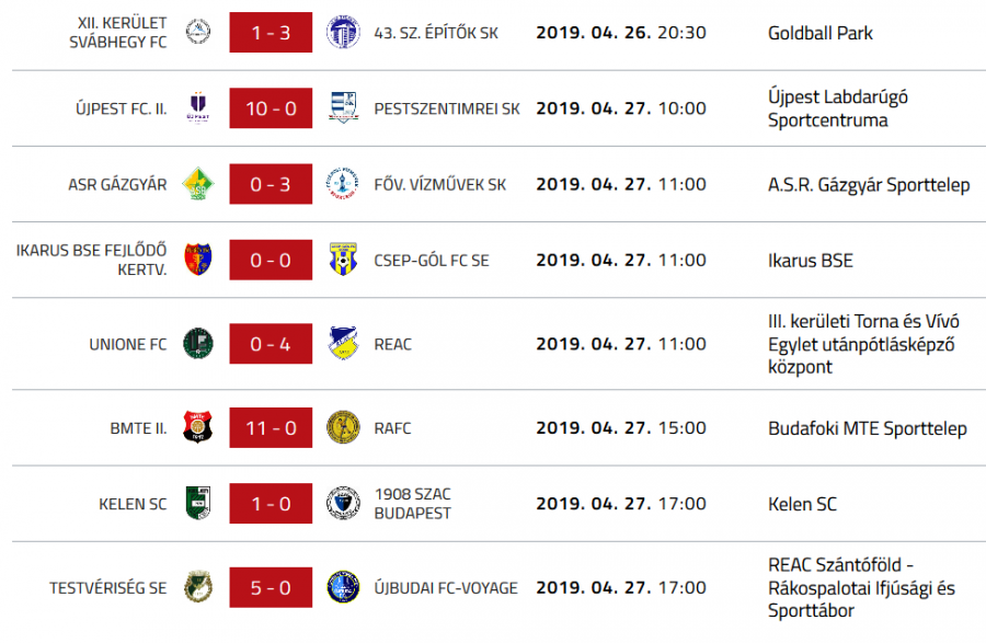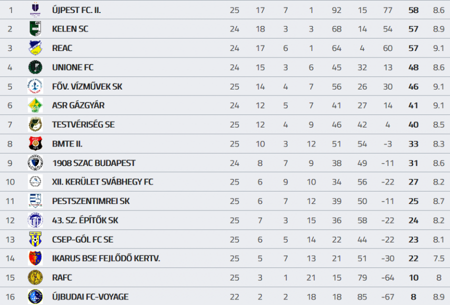A 25. forduló eredményei és a tabella: