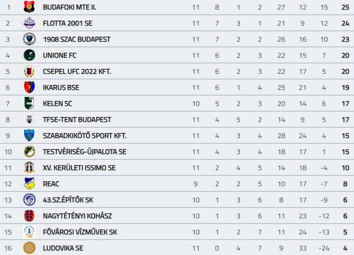 A BLSZI 11. fordulójának eredményei és a tabella: