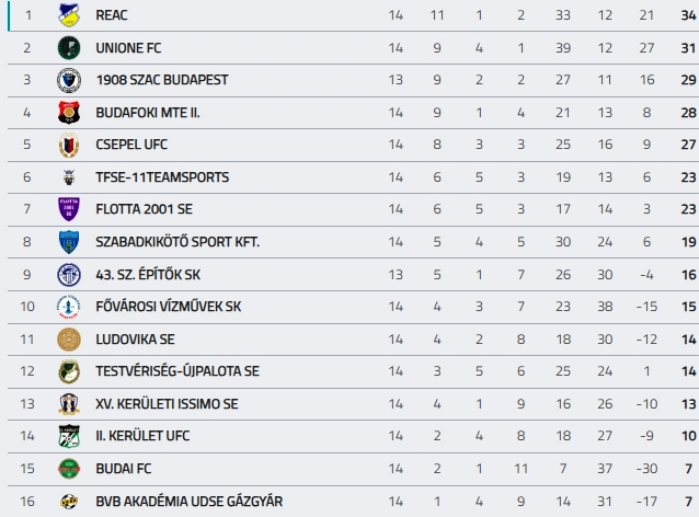 A BLSZI 14. forduló eredményei és a tabella: