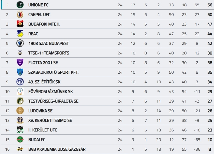 A BLSZI 24. fordulójának eredményei és a tabella: