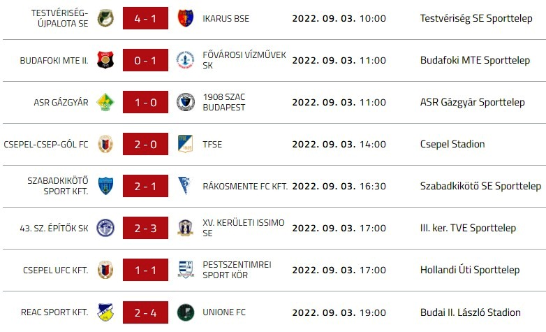 A harmadik találkozójukat azzal a Budafok II-vel játszották, amely teljesen ugyanúgy kezdte az idényt, két 1-0-s sikerrel (hazai pályán), a Csepel-Csep-Gól és a TF SE ellen.