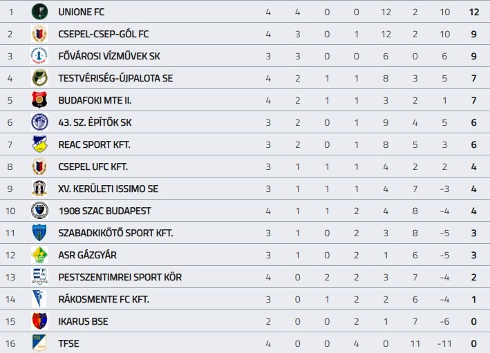 A Budapest-bajnokság I. osztály 4. fordulójában, Rákospalotán megosztozott egymással a pontokon az újonc Issimo és az előző szezonhoz képest eddig feltűnően kevés gólt szerző Budafok II.
