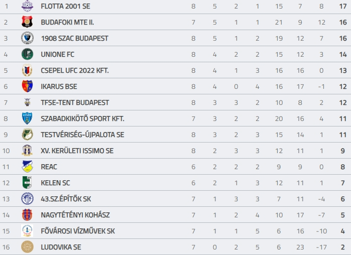 A BLSZI 8. fordulójának eredményei és a tabella: