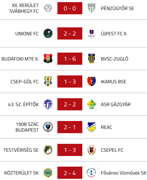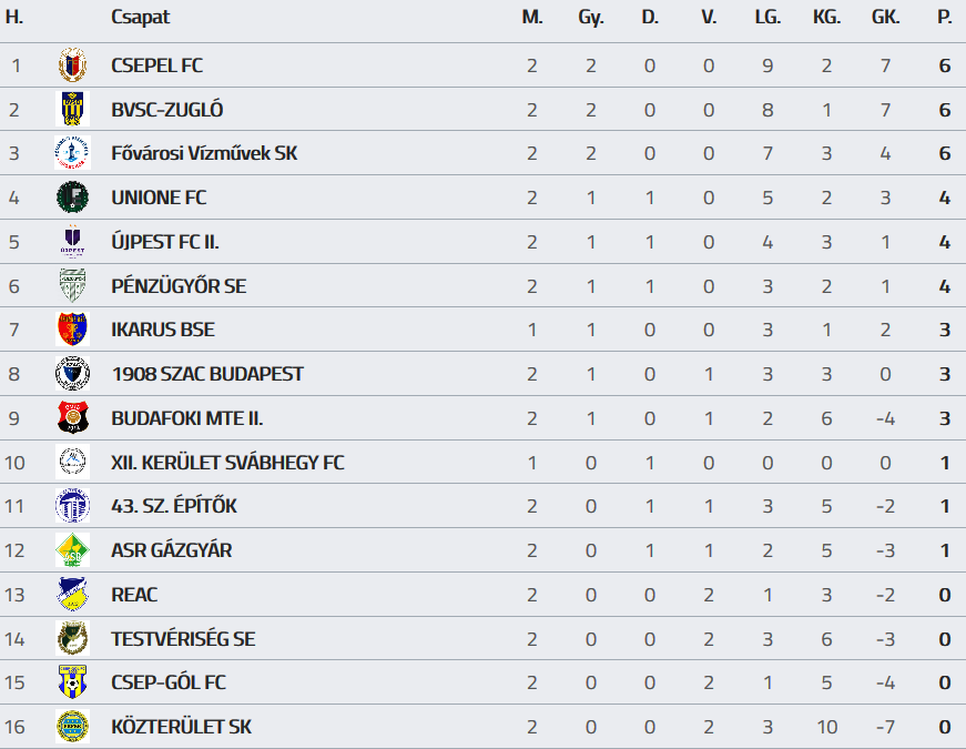 Az 1. és 2. forduló eredményei és a tabella: