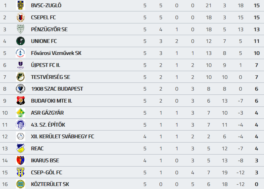 Az 5. forduló eredményei és a tabella: