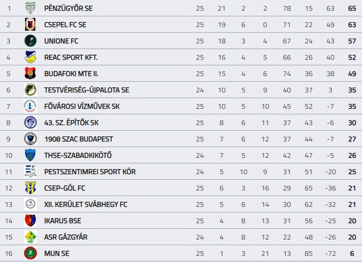 A kiesés ellen küzdelem továbbra is kiélezett. A sereghajtó Mun úgy néz ki elbúcsúzott az osztálytól, de az előttük állóknak is mindent bele kell adniuk, hogy ha meg akarják őrizni az I. osztályú tagságukat. Veszélyeztetett még a Gázgyár, az Ikarus, Svábhegy és Csep-Gól, vélhetően közülük kerül ki majd a másik kieső. Különös tekintettel arra, hogy – mint minden évben – most is esély van arra, hogy az automatikus 2 kieső mellett (az NBIII Budapesti kiesői miatt) további csapatok is búcsúzhatnak.