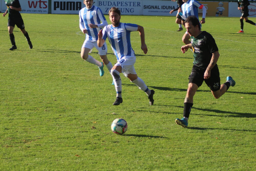 A vendégek karmestere, Kádár Máté viszi el a labdát Pálmai mellett az őszi mérkőzésen.