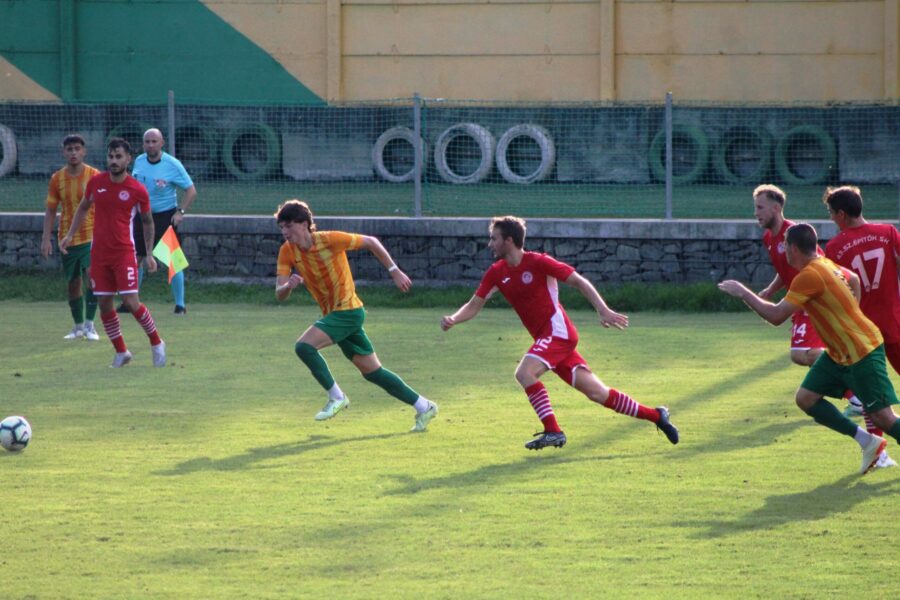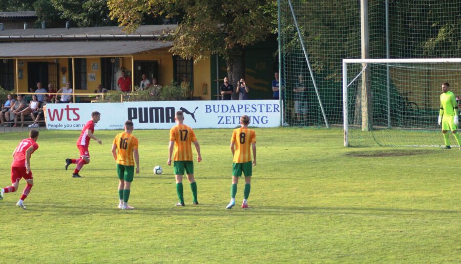 A kezdeti puhatolózás után egyre inkább a mieink vették magukhoz a kezdeményezést. Ennek jelei először a 11. percben mutatkoztak meg, amikor a hazai kaputól 25 méterre, középen Nyilas végezhetett el szabadrúgás, amit gyorsan a 11-es pontra nyesett, pont az érkező Kmetykó Márk lábára, aki egyből kapura is belsőzött, azonban Szabó kapus gyors vetődéssel oldalra ütötte a bal alsó felé tartó labdát!