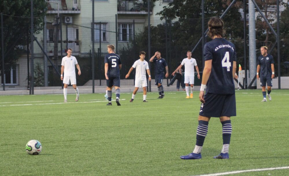 Az első játékrész első 30 perce a mieink meddő mezőnyfölényét hozta. A meddőséget mi sem mutatja jobban, hogy a támadó szekcióban szereplő játékosaink közül egyedül Laukónak volt egy kaput eltaláló kísérlete. A félidő utolsó negyedórájában viszont feléledtek az egyetemisták és bár ez a javulás náluk is jobbára csak pontrúgásokban mutatkozott meg, azért Takács révén közel álltak a vezetés megszerzéséhez.