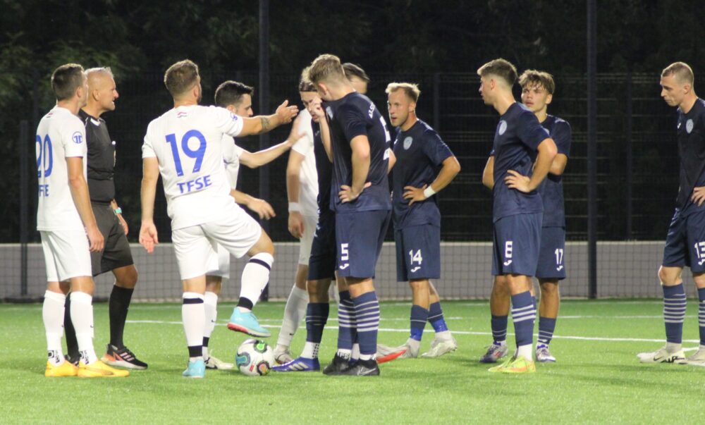 Kanyó a mindent eldöntő gólt szerzi Szabó mellett. Kmetykó hiába reklamál! (forrás: TF facebook oldal)