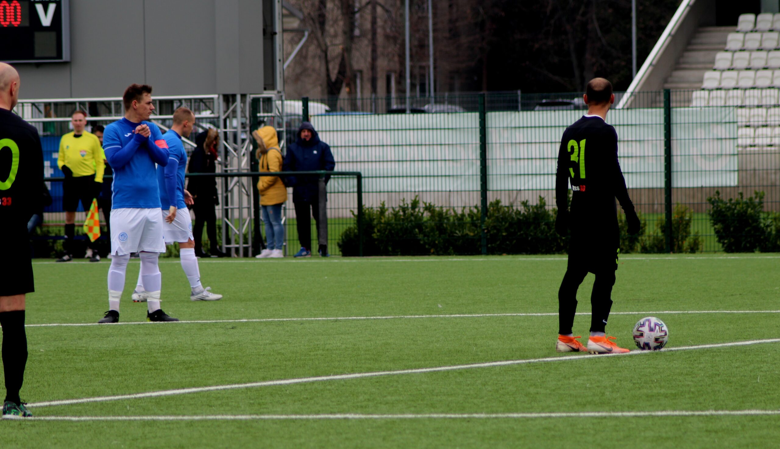 A 23. percben veszélyeztettek először a „feketék”. A jobb oldalon Hassan tálalt Kulcsár elé, aki befelé húzott, de végül a támadót kísérő Kmetykó M. az ötös és az alapvonal találkozásánál blokkolni tudta a támadó visszagurítását. A 25. percben ismét – most balról – Kulcsár indult meg a kapunk felé, végül az ötös sarkáról, 2-3 védőnk nyomásától terhelten az oldalhálóba lőtt.