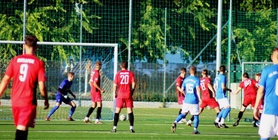 A meccs hajrájában, a mezőnyben inkább kis játékokat preferáló Budafok el kezdte ívelgetni a labdát, ami komoly veszélyt nem okozott ellenben nagy küzdelemre késztette a védőinket. A kontráink viszont továbbra is ültek…illetve nem ültek, mert a gólok elmaradtak.