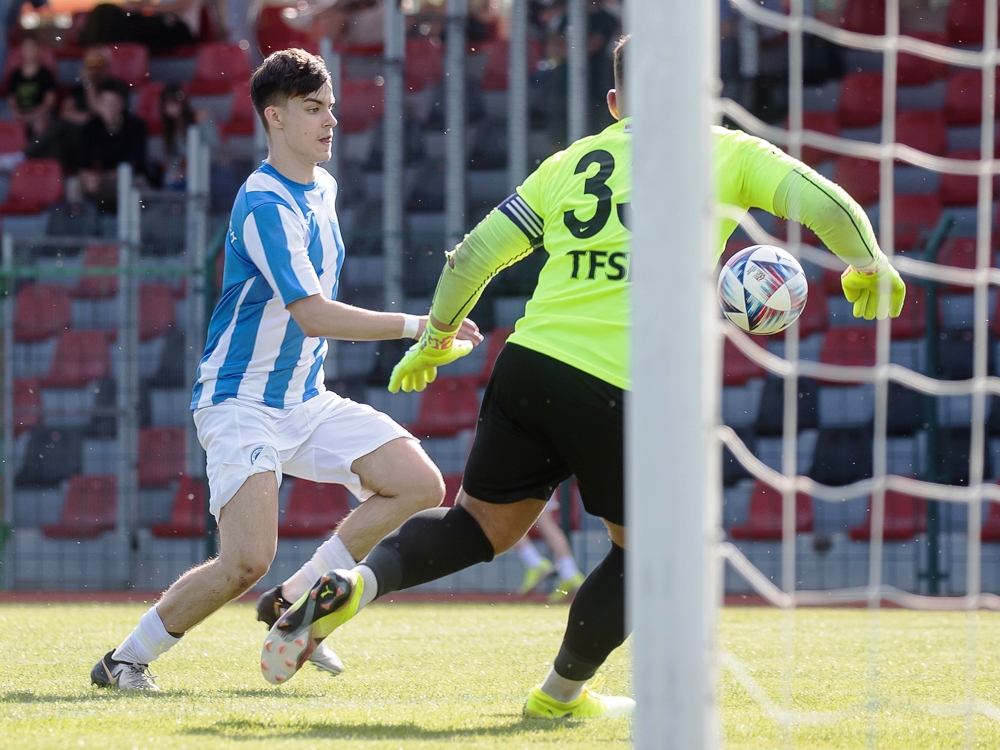 Az első félidőben mindenki azt kapta amit várt. A mieink inkább rövidpasszos játékkal hozták fel a labdákat és Erdős utolsó passzaival igyekeztek ziccert kialakítani. A TF pedig elsősorban hosszú indításokkal próbálták megjátszani a gyors támadóikat. Az elején Molnár Dávidnak ki is kellett lépnie a kapujából egy két ilyen labdára, de aztán inkább a mieink játszottak fölényben. Nem is lett volna különösebb probléma, ha nem kapjuk a semmiből azt a bomba gólt. Szerencsére hamar sikerült egyenlíteni és ezután már jobbára a mieink játékában volt benne a második gól.