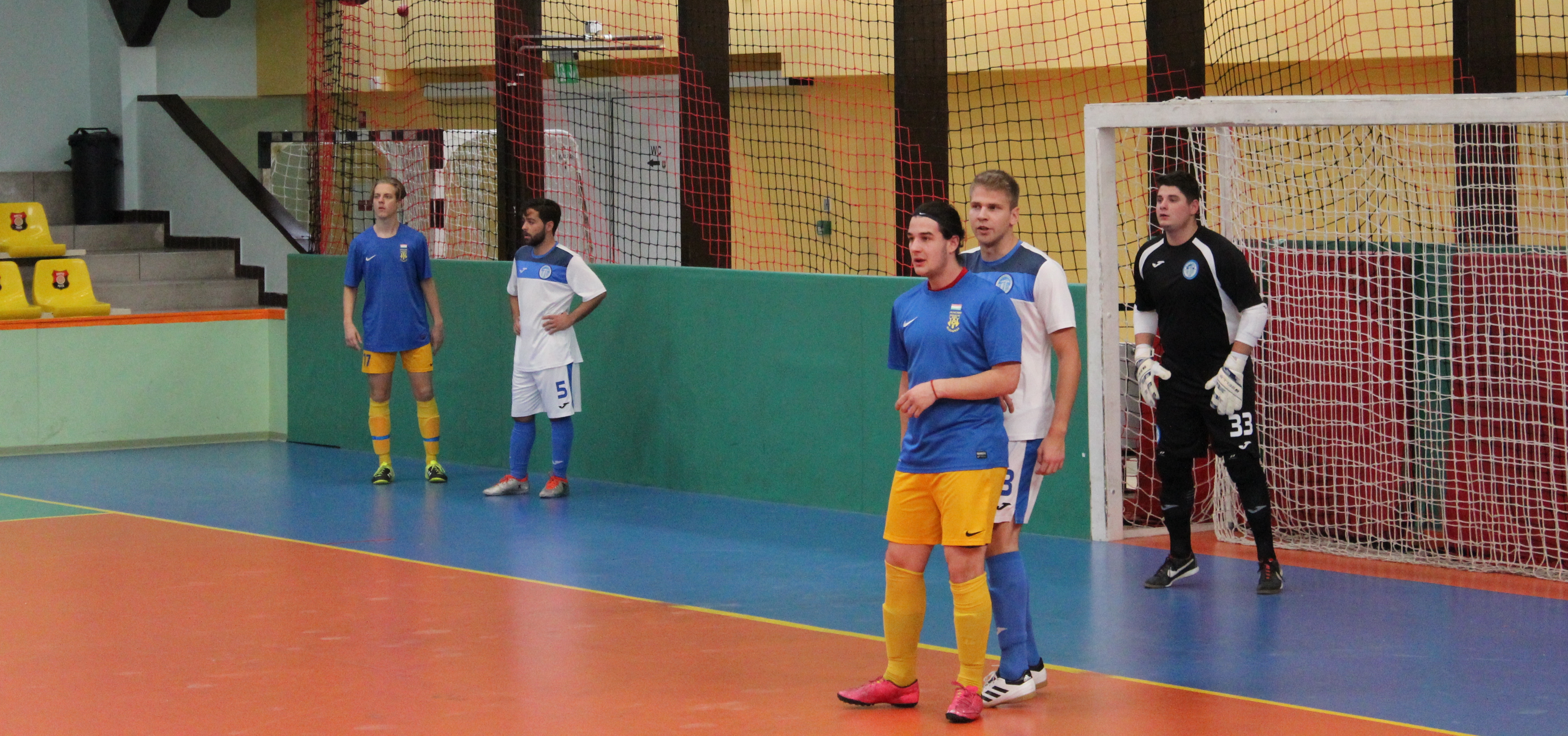 IMG_1347A mieink ha nem is a legerősebb, de azért igen komoly csapattal futottak neki a csoport meccseknek; Balla, Gergely, Kóródi, Demeter, Balazsin, Kavalecz, Kablawi, Örkényi, Vécsi, Szabó Zs., és Juhász kerettel jelentek meg a Budafoki sportcsarnokban. Elsősorban Mészáros, Horváth N., Birinyi és Keglovics fért volna el még a terem keretben, de most ők nem jöttek. Mellettük a „terem specialista” mester, Emecz Viktor hiányában, a csapatvezetői pozicióban Machalek Attila vezette az együttest.