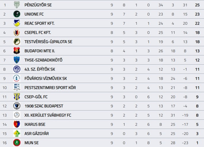 Eredmények, beszámolók a 9. fordulóból és a tabella: