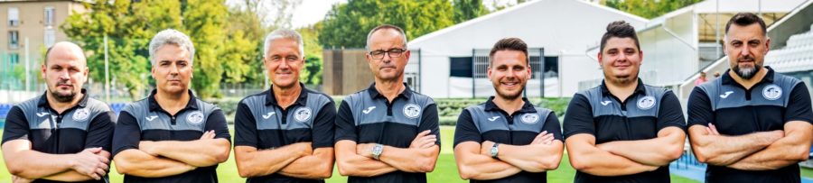 Hátsó sor balról: Kovács Dávid, Kocsis Balázs, Kmetykó Márk, Faragó Bálint, Fodor Kristóf, Gerhardt Ádám, Maczinkó Roland, Örkényi Bence, Demeter Viktor. Középső sor balról: Bagyinszky Dániel, Kató Dominik. Pándy-Szekeres Dániel, Slehovszki Krisztián (asszisztens edző), Horváth nZoltán (szakmai tanácsadó), Dr. Hevesi Tamás (vezető edző), Zsáky Mátyás (elnökségi tag, támogató), Emecz Viktor (pálya edző), Nadházi István (masszőr), Balla Bertalan (kapus edző, technikai vezető), Rozs Ádám, Ábrahám Ábel, Gergely Viktor. Alsó sor balról: Orosz Botond, Hámory Zoltán, Rozsáli Artur, Pintér Bence, Kires Attila, Ronny Haraldseid, Berencsi Bence, Borgulya Gábor, Stampf Armand, Szabó Zsolt, Mészáros Dominik.