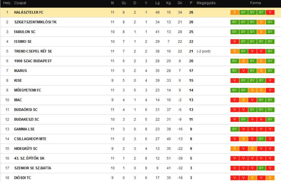 A szezonvégi (még igencsak foghíjas) tabella: